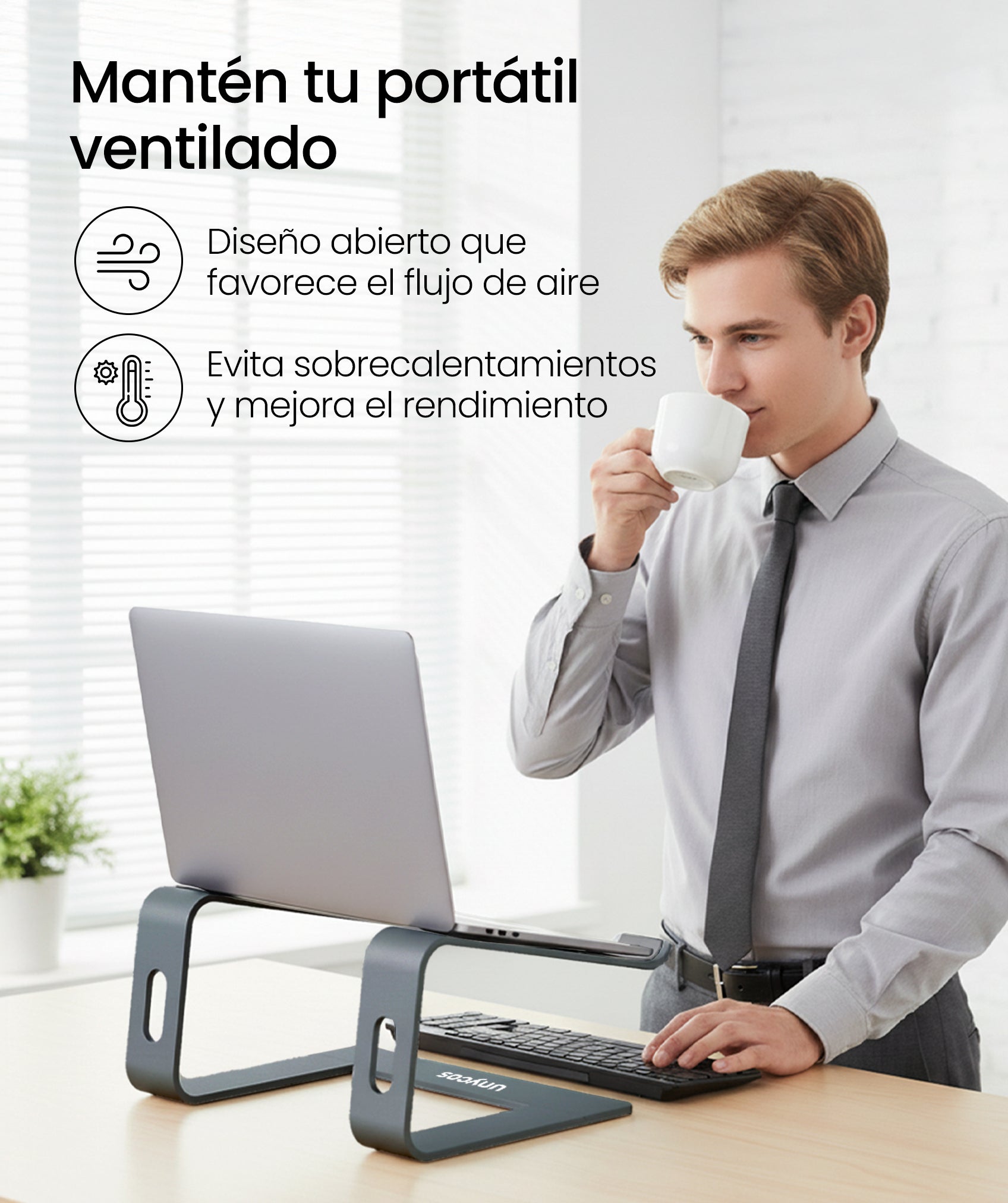 Sein außergewöhnliches U-förmiges Design ermöglicht eine korrekte natürliche Luftzirkulation, um das Gerät zu kühlen und das Risiko einer Überhitzung zu verringern, die das einwandfreie Funktionieren Ihres Geräts beeinträchtigen könnte.