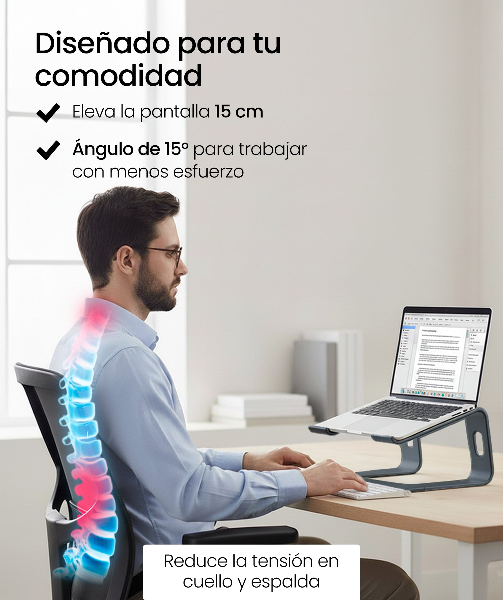 Dank der Höhe und Position können Sie ganz normal arbeiten, mit dem Bildschirm auf Augenhöhe, was Ermüdung und Schmerzen in Nacken, Rücken, Schultern und vieles mehr vermeidet!
