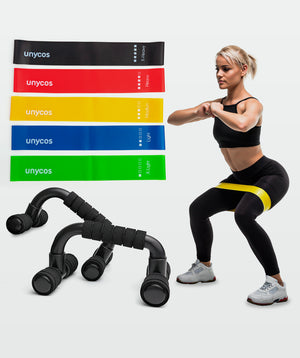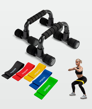 Este set de soportes para flexiones y bandas elásticas es ideal para ejercitar y fortalecer pectorales, deltoides, tríceps, espalda, abdomen, piernas y caderas, logrando un entrenamiento integral.