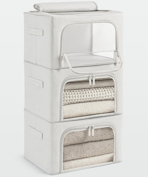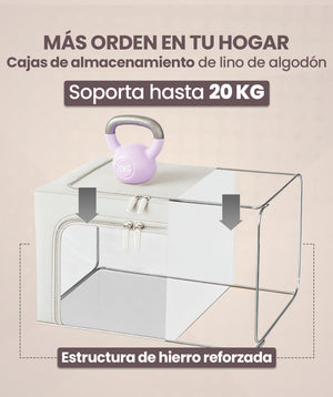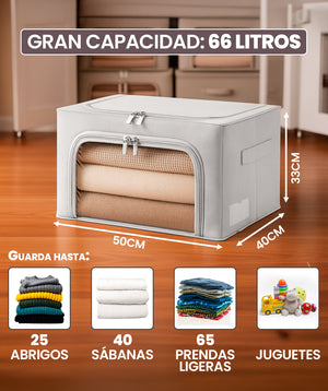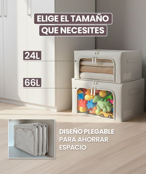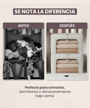 Con 2 diseñso plegables y portátiles: Uno de 40 x 30 x 20 cm y otro de 50 x 40 x 33 cm, estas cajas permiten una organización eficiente de prendas, creando más espacio en tu armario. Son ideales para apilar en lugares reducidos cuando no están en uso y transportar con facilidad.
