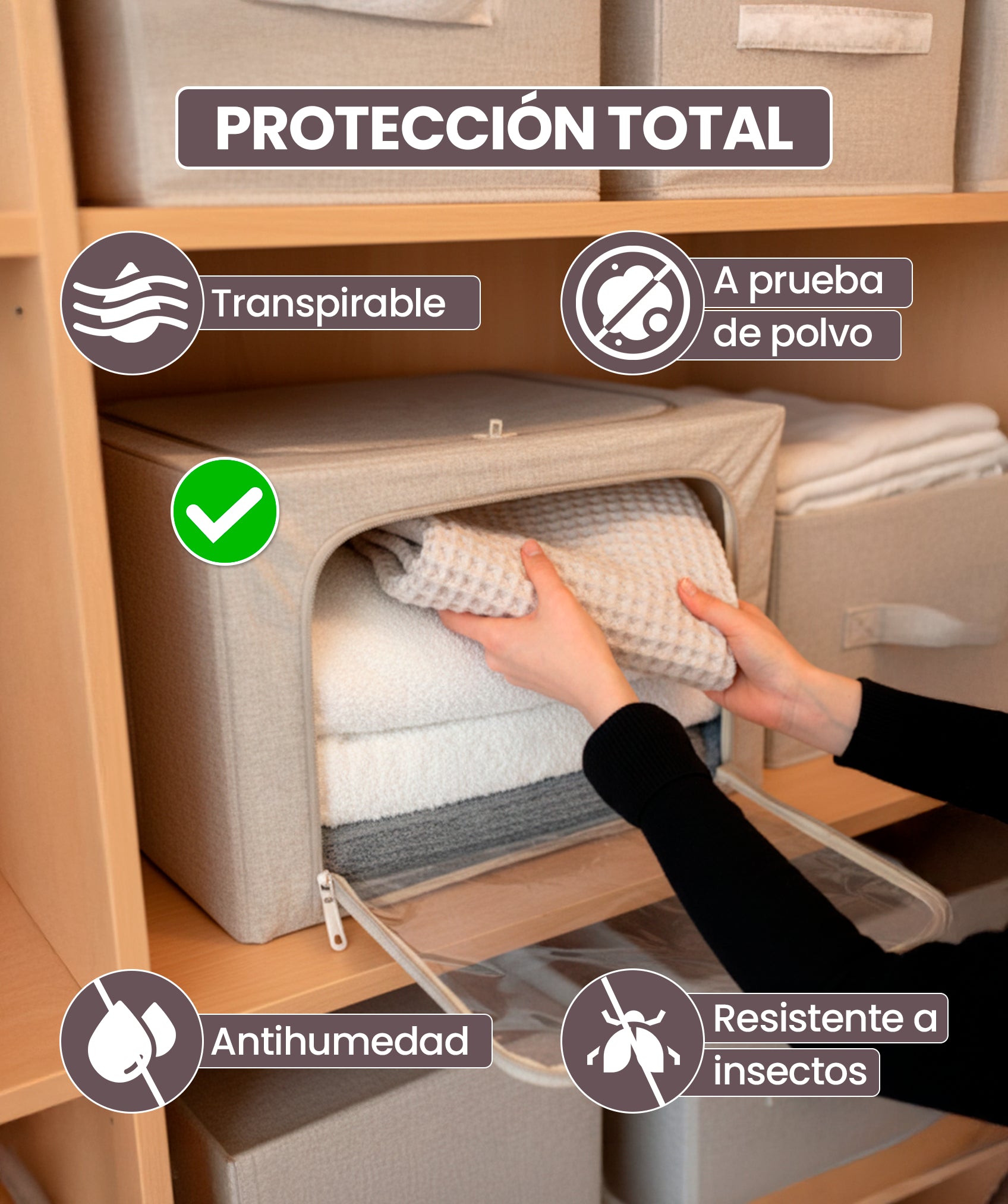 Recomendada para organizar armarios y guardarropas o para almacenar debajo de la cama. Es perfecta para conservar mantas, edredones, almohadas, juguetes, adornos navideños, ¡e innumerables opciones más! También protege tu equipaje en viajes o mudanzas y ayuda a mantener ordenados dormitorios, sótanos, áticos y oficinas.