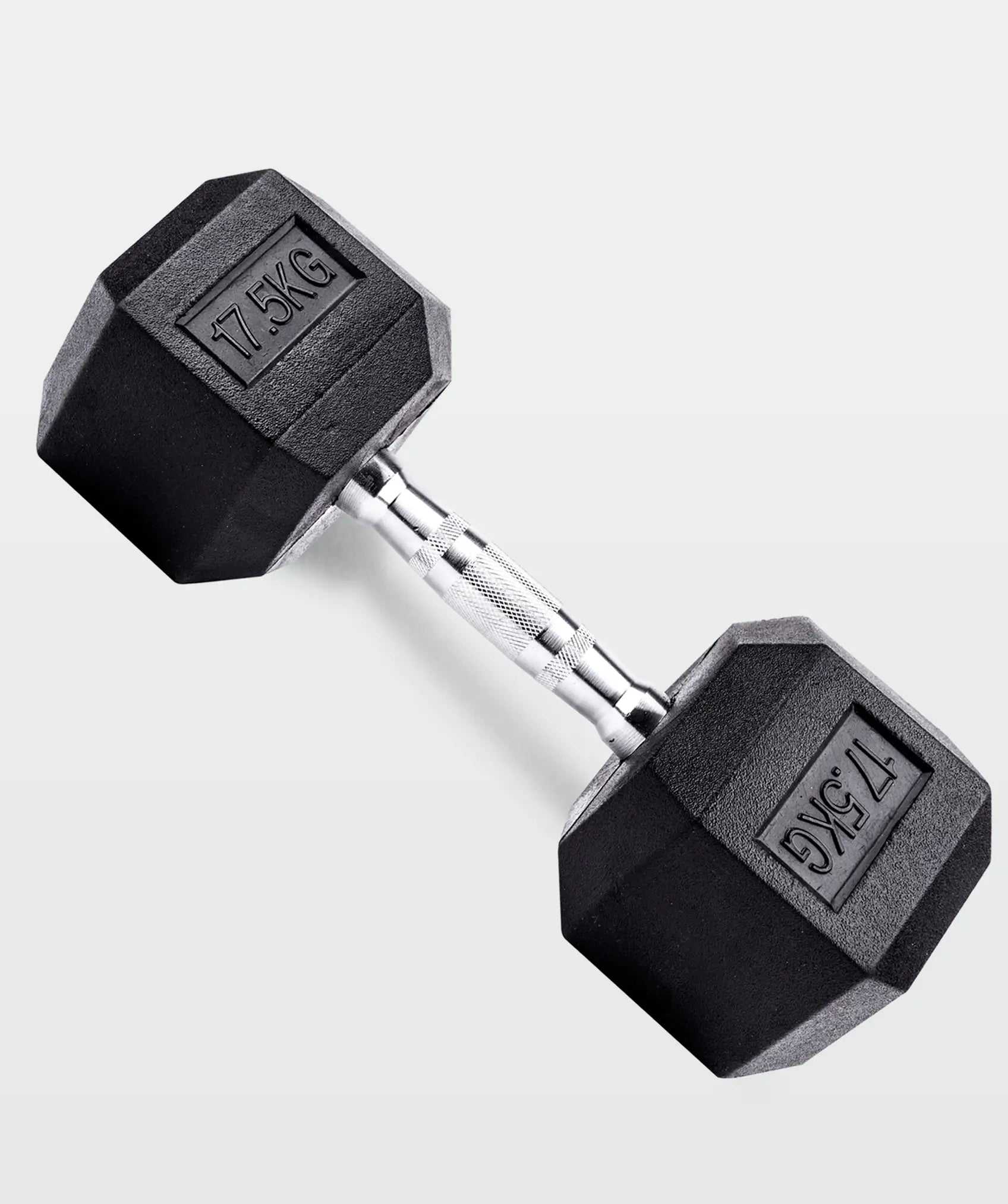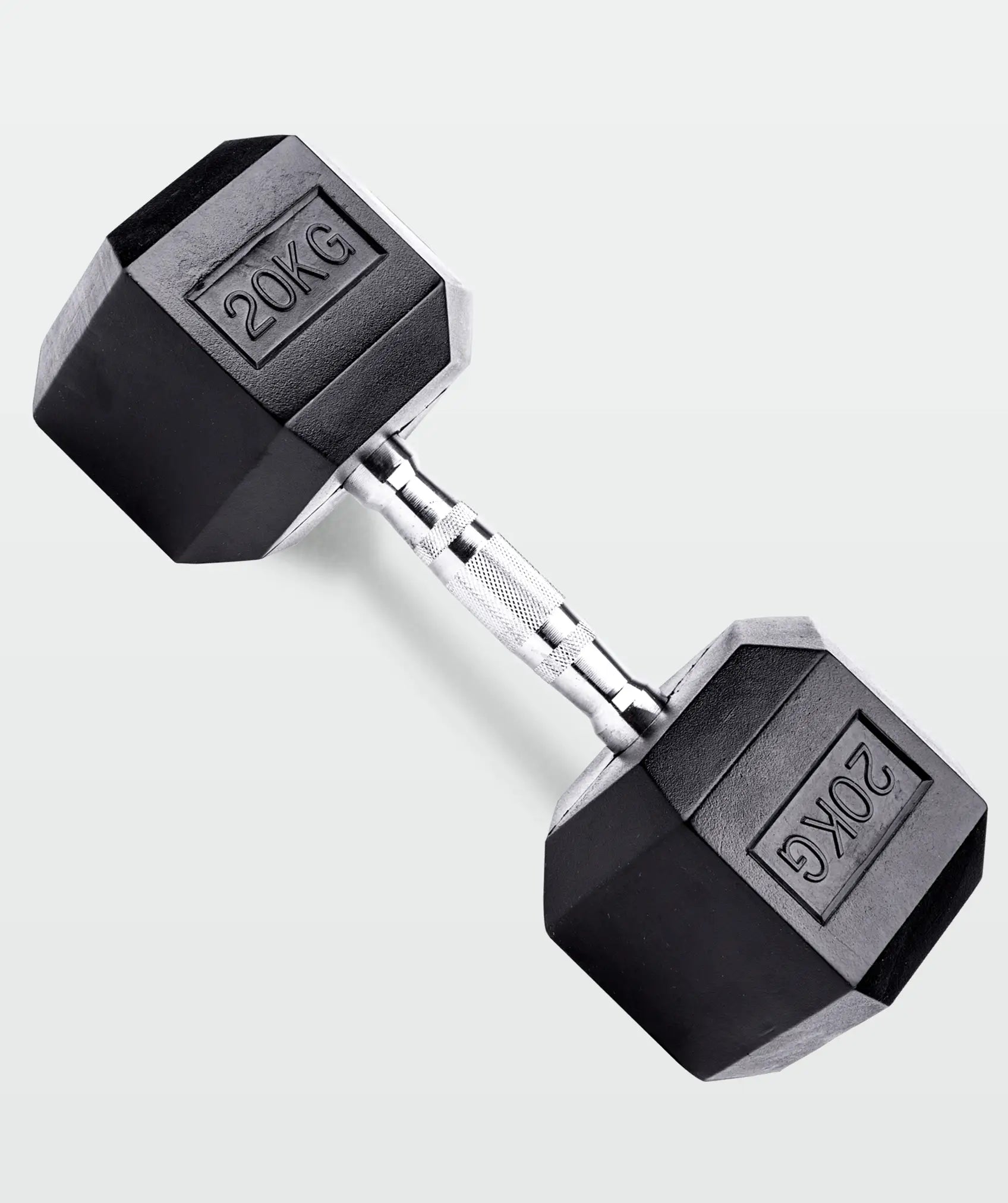 Hex-hantel 15-17,5-20 kg mit verchromtem griff und gummi
