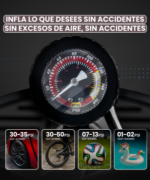 Besorgt über den richtigen Druck? Unsere Pumpe verfügt über ein hochpräzises Manometer, das dir ermöglicht, den Druck in Echtzeit zu überwachen und auf maximal 160 PSI/11 Bar zu justieren. Keine bösen Überraschungen mehr beim Aufpumpen.