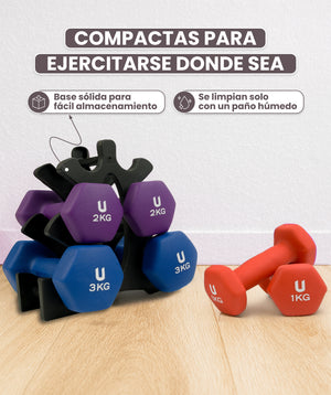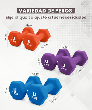 Neopren-hantelset 1-3kg: mit sechseckigem und rutschfestem design