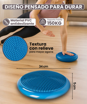 Mit einem leichten Gewicht von 850 g und praktischen Maßen (Ø 34 cm, 5 cm Dicke) kannst du diese Scheibe überallhin mit Leichtigkeit mitnehmen. Zusätzlich enthält sie eine Luftpumpe, damit du deine Sitzungen überall genießen kannst. Mache Yoga zu einem Teil deines Lebens, jederzeit und überall! 💫