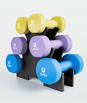 Das Set umfasst Hanteln von 3 kg, 4 kg und 5 kg und ist somit die perfekte Ergänzung für einfache Trainingsroutinen, Aerobic, Fitness, Yoga, Pilates und CrossFit.