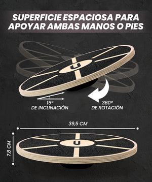 Con un diámetro de 39,5 cm, esta balance board es lo suficientemente amplia para entrenar de forma segura y efectiva, promoviendo la estabilidad de usuarios de diferentes contexturas. Además, su peso de 1,4 kg y su estructura compacta la hacen fácil de transportar.