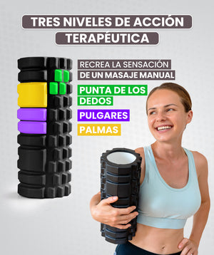Unser Roller verfügt über ein therapeutisches 3D-Gitter, das Muskelverspannungen reduziert, Verletzungen vorbeugt und die Erholung beschleunigt. Er ist der ideale Begleiter, um deinen Körper zu formen und in Form zu halten.