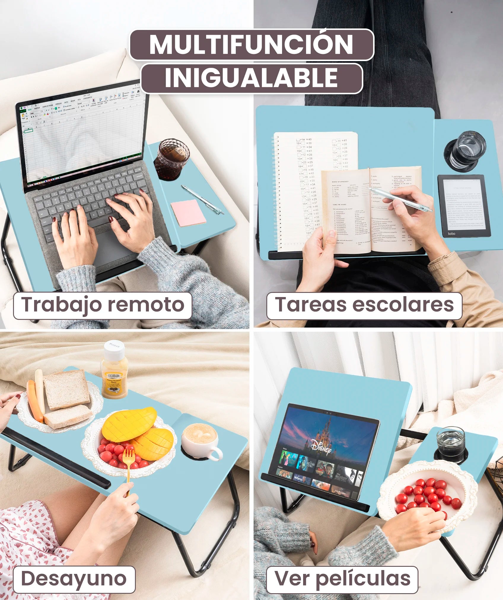 Mit einem ergonomischen Design und rutschfesten Stoppern garantiert dieser Tisch einen sicheren Platz für deinen Computer. Er verfügt sogar über einen speziellen Platz für deine Getränke, um unerwünschte Verschüttungen zu vermeiden! Entdecke die perfekte Balance zwischen Komfort und Funktionalität!