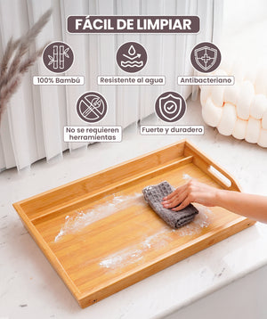 Unser Tisch wurde sorgfältig mit Ihrem Komfort im Sinn entworfen. Ausgestattet mit 2 Tragegriffen, die Stabilität bieten, und hohen Rändern von 6,5 cm, um zu verhindern, dass Gegenstände herunterfallen. Seine ausladungsfreien Beine bieten eine sichere und sorgenfreie Erfahrung.